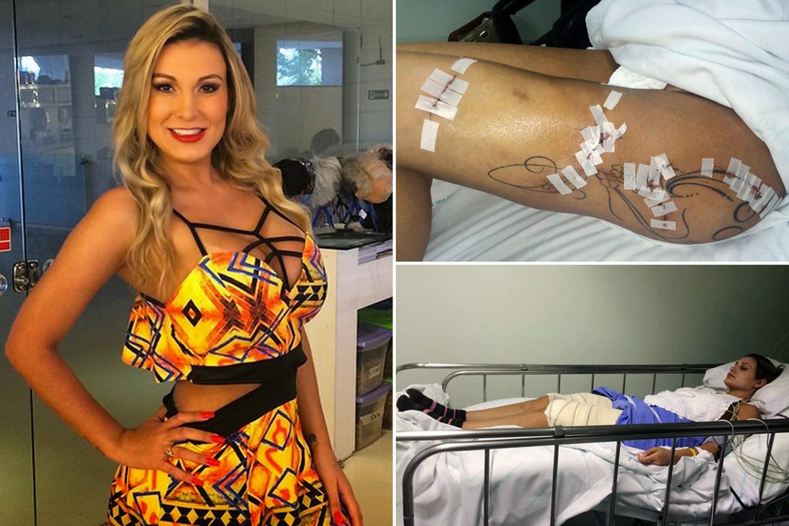 On November 29, 2014 the young woman was hospitalized in critical condition in the ICU of a Porto Alegre hospital due to a generalized infection that resulted from large quantities of silicone gel she had implanted in her thighs to make them thicker, for show business appearances. According to FoxNews Latino, Andressa had two operations to drain aquagel from her thighs.